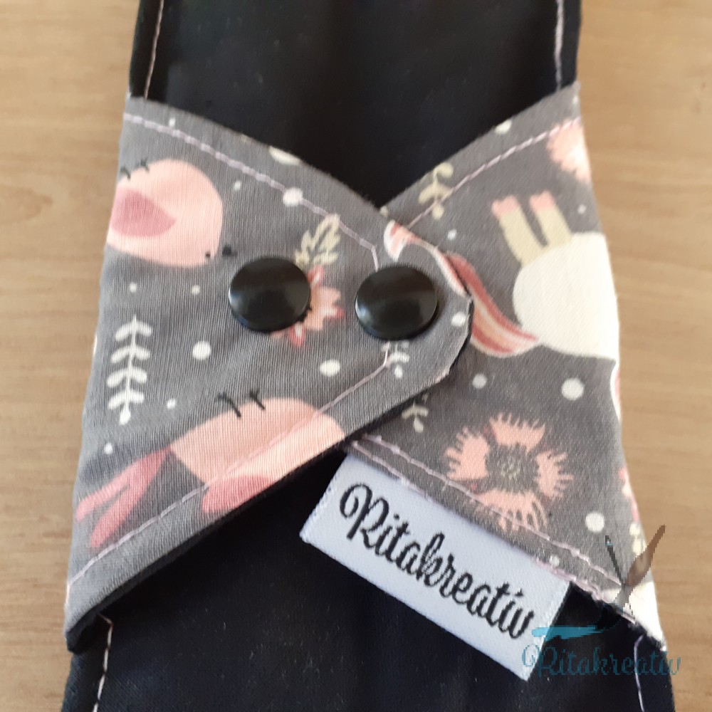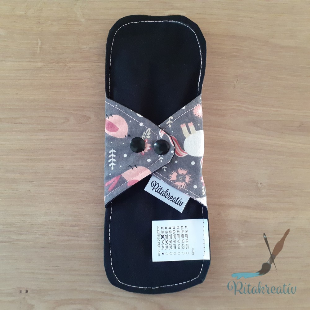 A betétek mintás, varrott oldala néz test felé. Itt található a folyadékelvezető barázda. Az egyszínű oldala a fehérnemű irányába néz. Ajándék dupla sor patenttal van felszerelve, hogy biztosan minden fehérneműdben kényelmesen használni tudd.