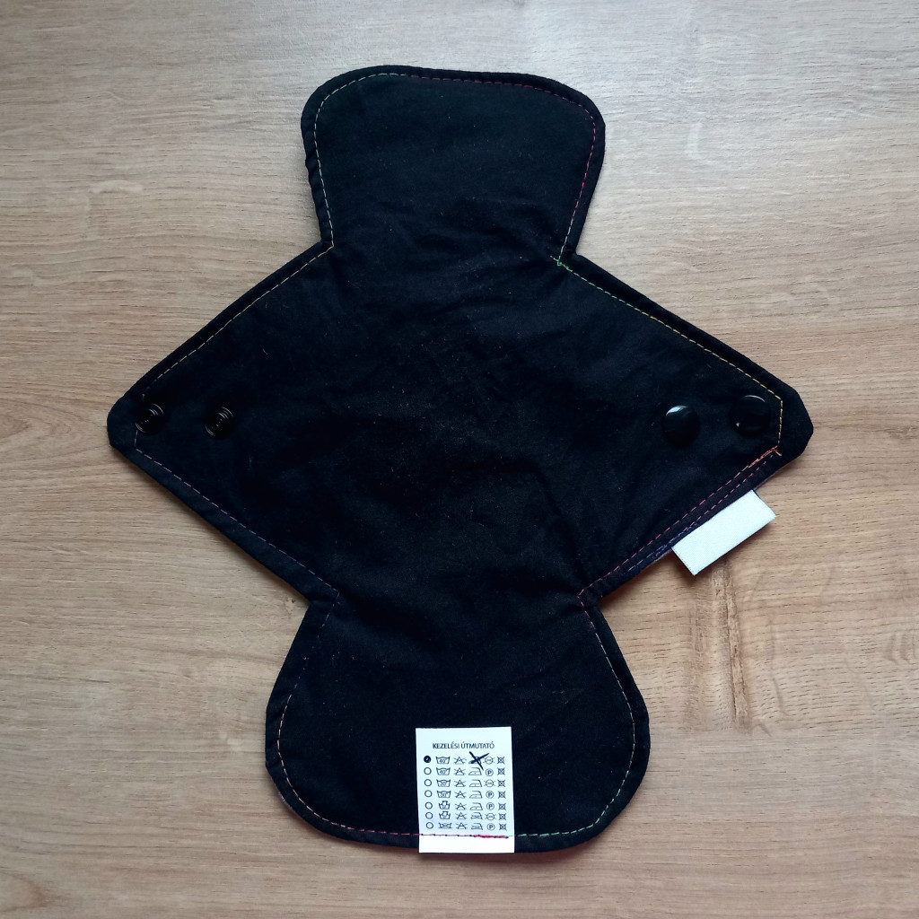 A betétek mintás, varrott oldala néz test felé. Itt található a folyadékelvezető barázda. Az egyszínű oldala a fehérnemű irányába néz. Ajándék dupla sor patenttal van felszerelve, hogy biztosan minden fehérneműdben kényelmesen használni tudd.