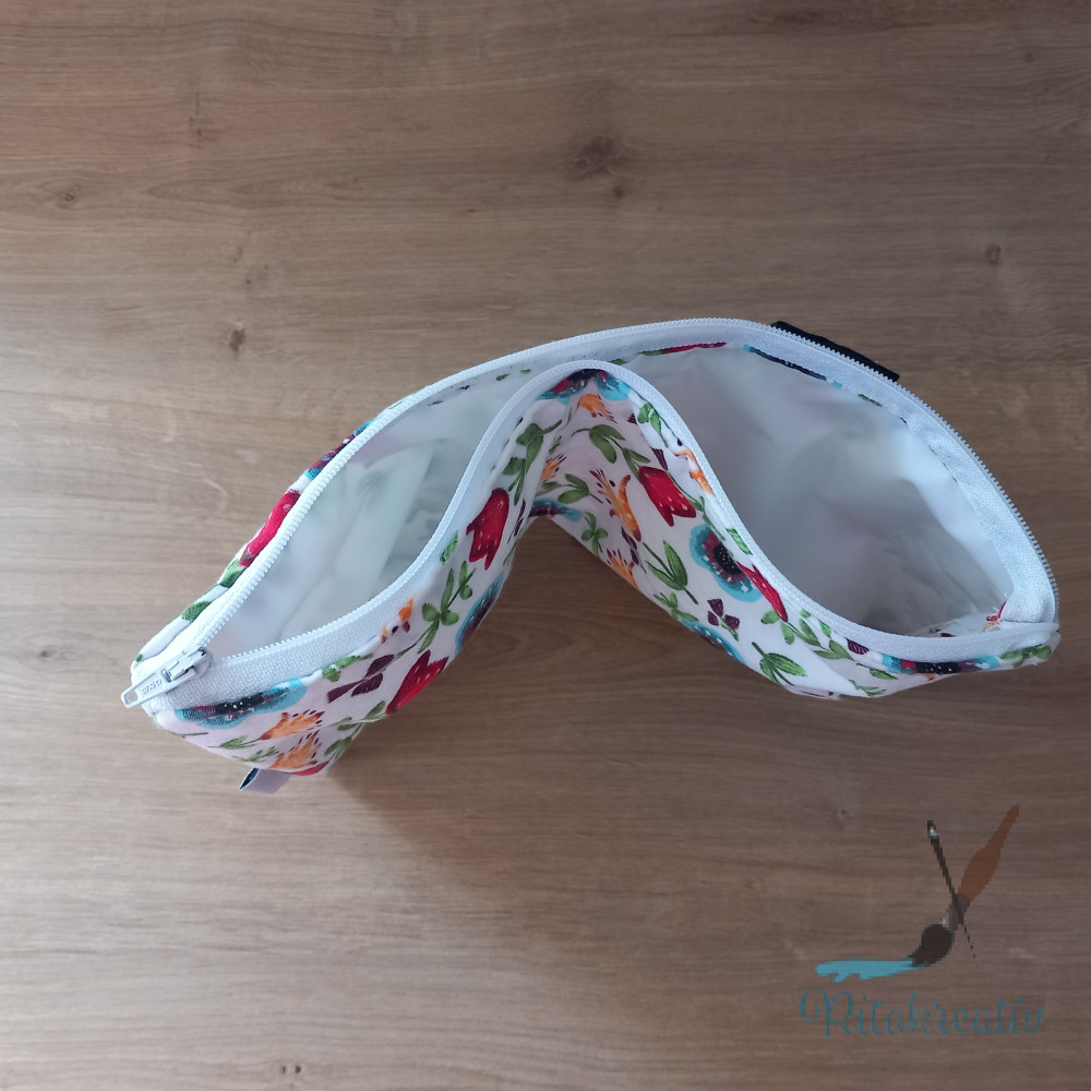 Nem kell széttúrni a táskádat, hogy megtaláld a betéteidet! Kialakításának köszönhetően diszkréten tárolhatod egy helyen a használt és tiszta betéteidet együtt a menstruációd napjaiban ebben a szép és praktikus két zsebes tartóban. Belső része vízhatlan anyagból készül. Egyik oldalon praktikus jelölő címkével, hogy tudd melyik zsebben mit tárolsz. Cipzárral könnyen visszazárható, nem szóródik ki a tartalma.