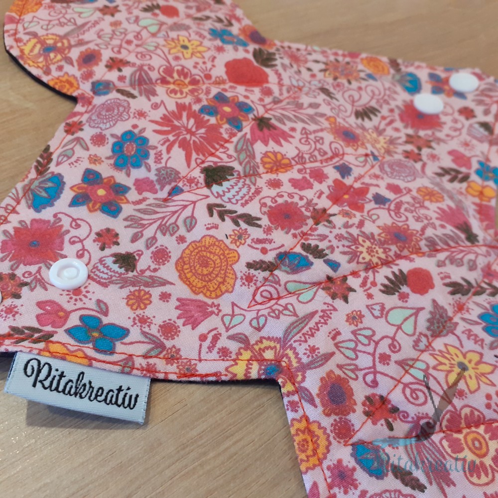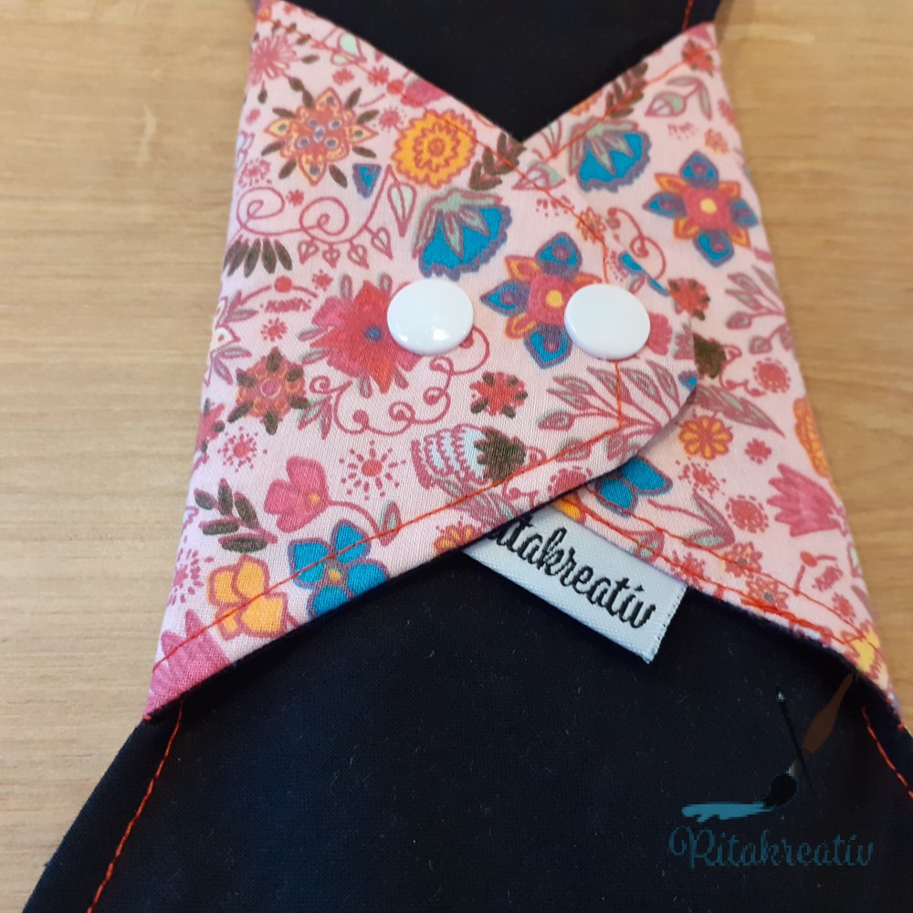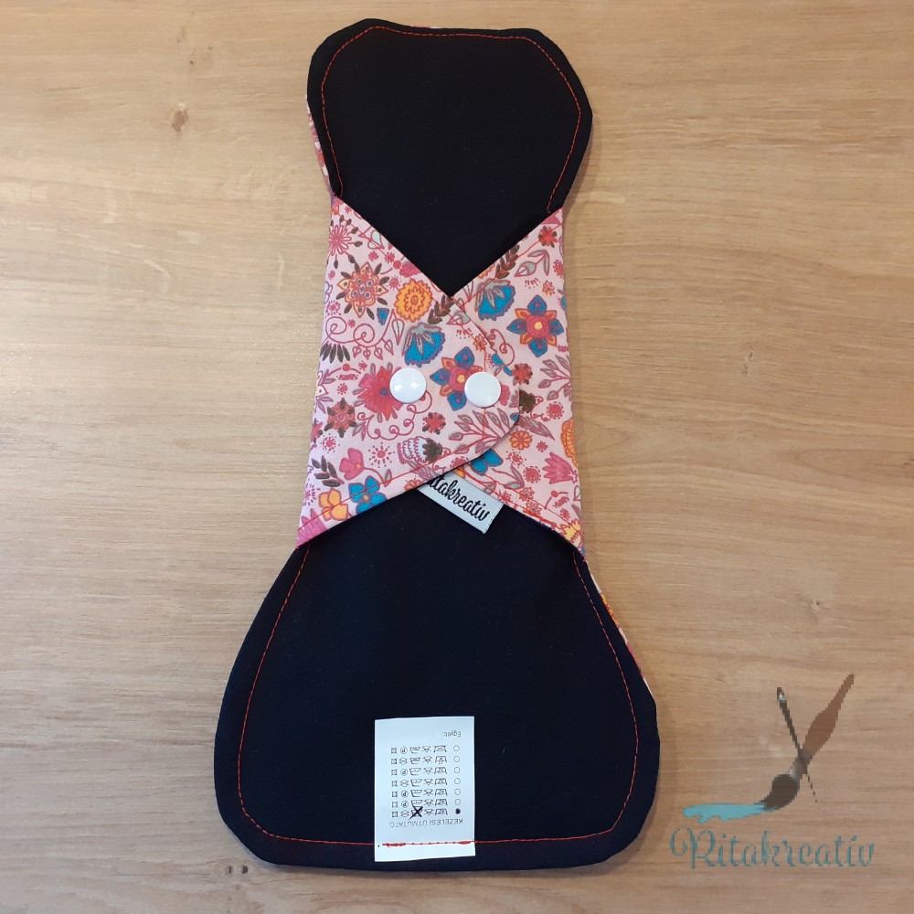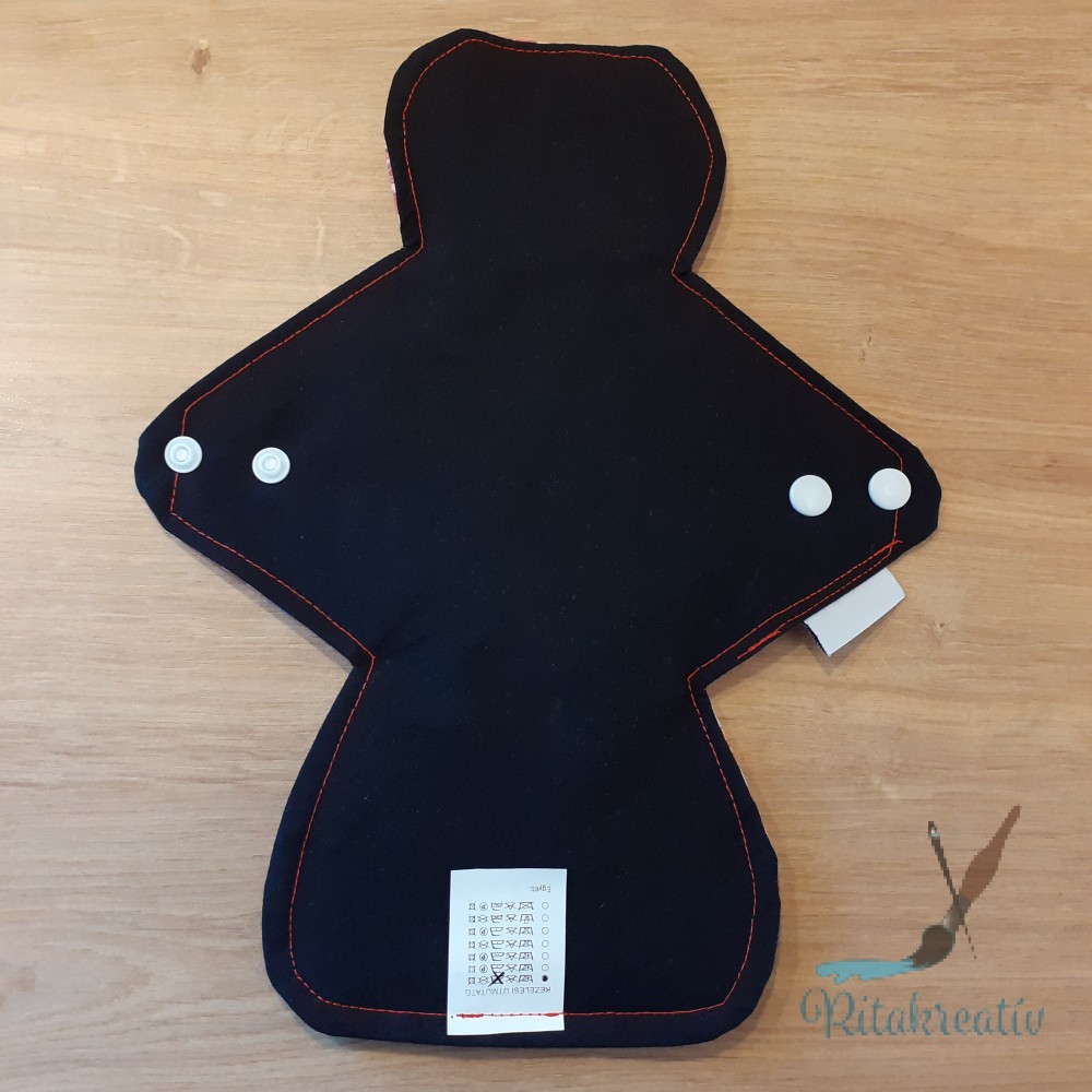 A betétek mintás, varrott oldala néz test felé. Itt található a folyadékelvezető barázda. Az egyszínű oldala a fehérnemű irányába néz. Ajándék dupla sor patenttal van felszerelve, hogy biztosan minden fehérneműdben kényelmesen használni tudd.
