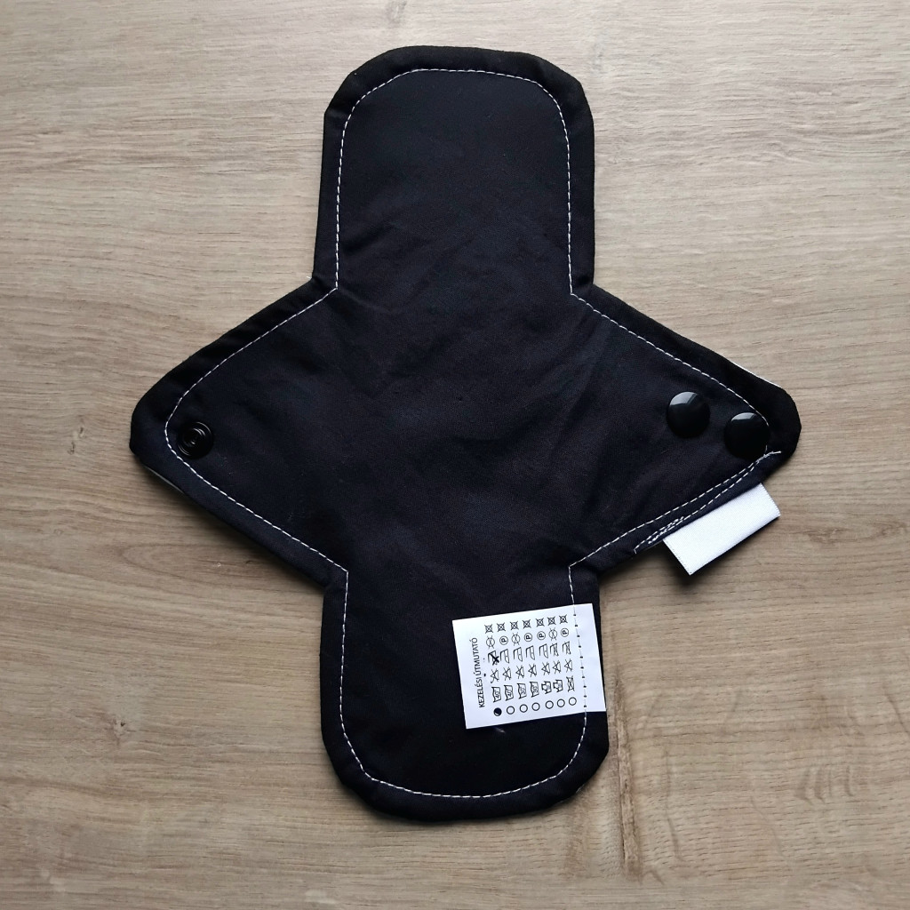 A betétek mintás, varrott oldala néz test felé. Itt található a folyadékelvezető barázda. Az egyszínű oldala a fehérnemű irányába néz. Ajándék dupla sor patenttal van felszerelve, hogy biztosan minden fehérneműdben kényelmesen használni tudd.