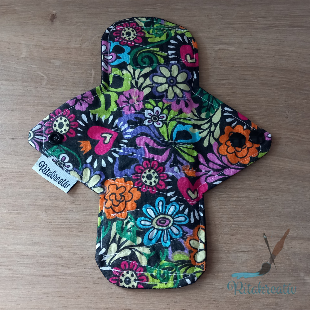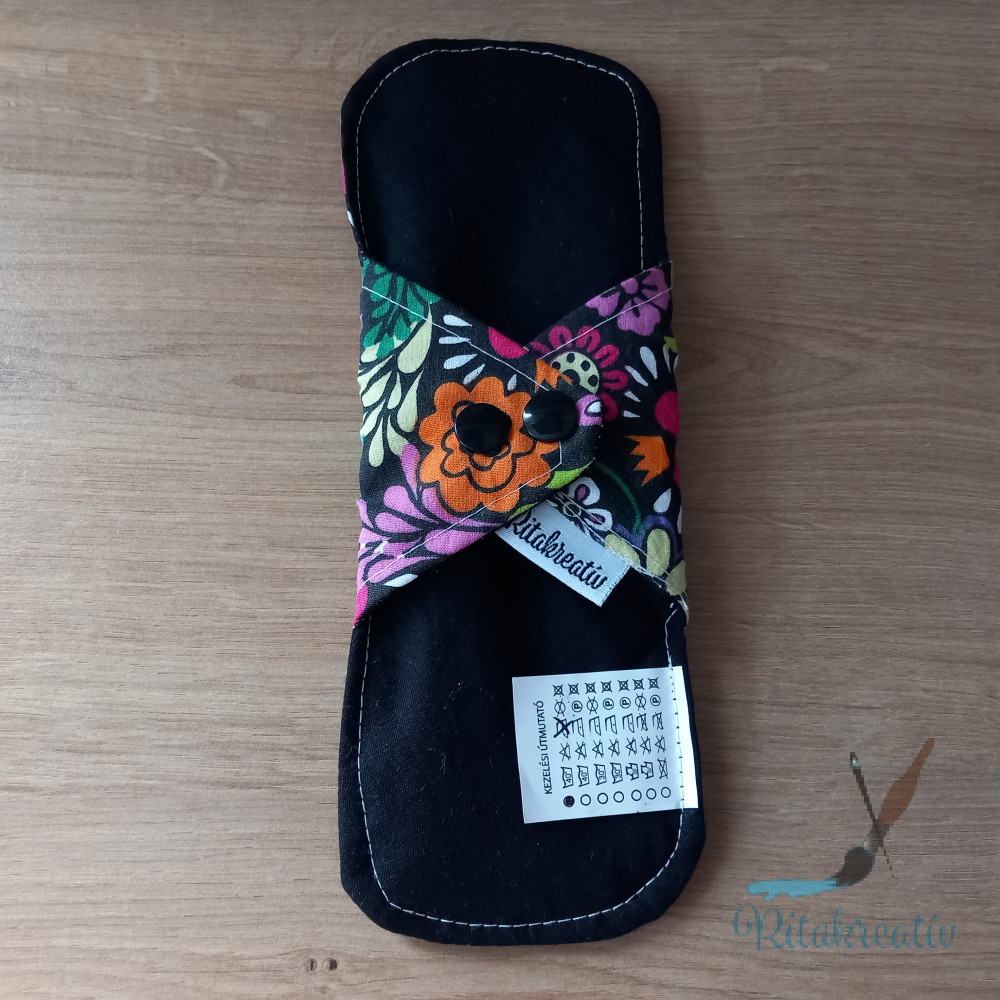 A betétek mintás, varrott oldala néz test felé. Itt található a folyadékelvezető barázda. Az egyszínű oldala a fehérnemű irányába néz. Ajándék dupla sor patenttal van felszerelve, hogy biztosan minden fehérneműdben kényelmesen használni tudd.