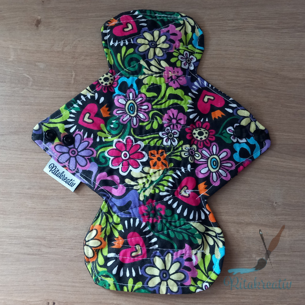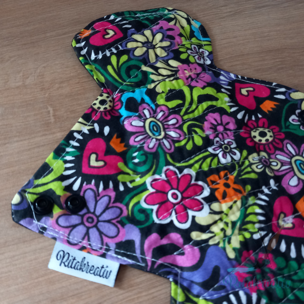 A betétek mintás, varrott oldala néz test felé. Itt található a folyadékelvezető barázda. Az egyszínű oldala a fehérnemű irányába néz. Ajándék dupla sor patenttal van felszerelve, hogy biztosan minden fehérneműdben kényelmesen használni tudd.
